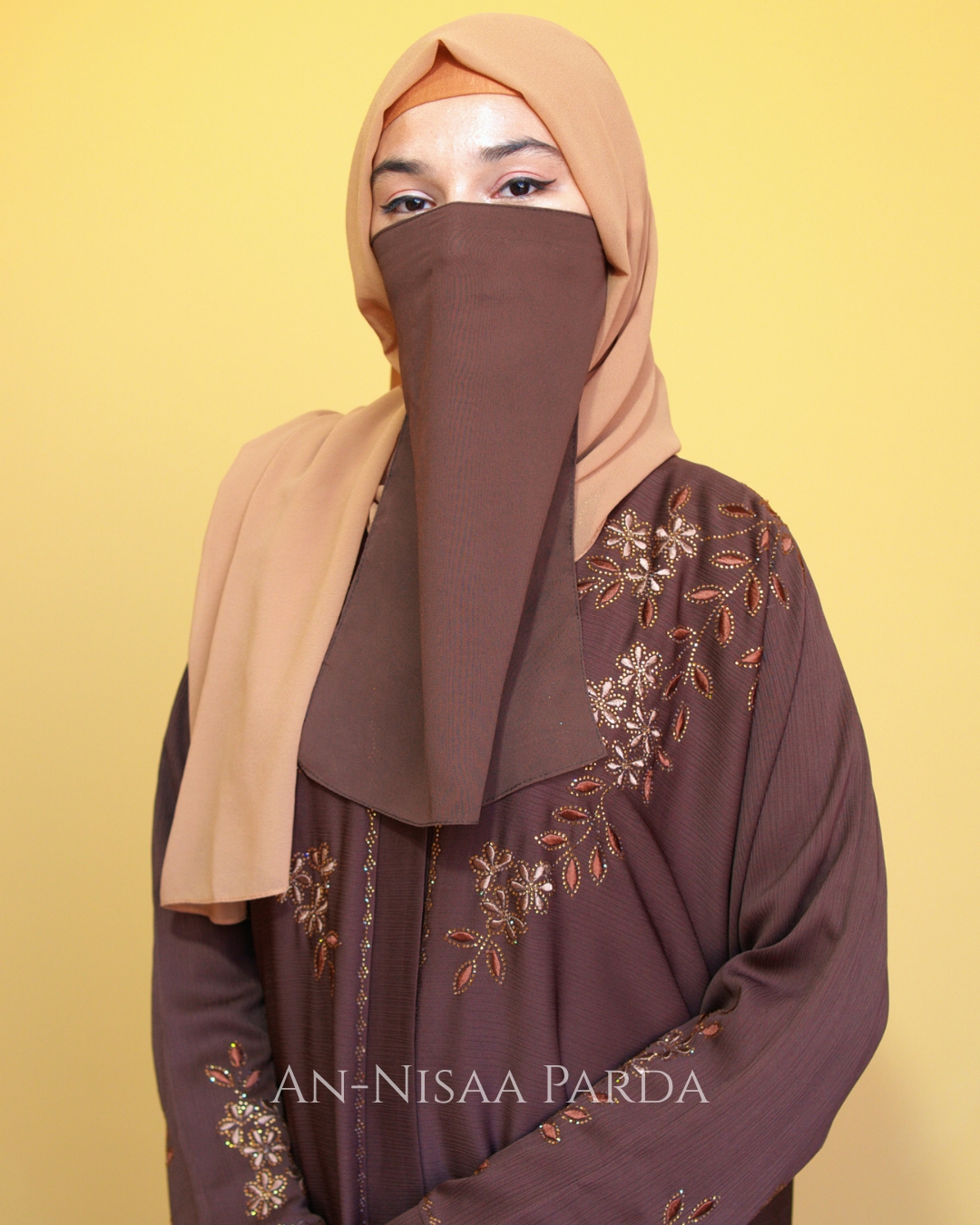 - Sleeves: Long, beaded floral vine embroidery with decorative stones
